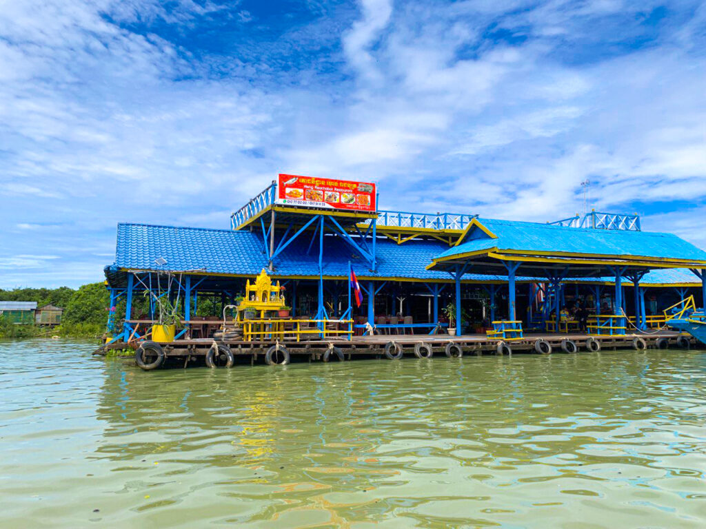 トンレサップ湖はカンボジアの中央に位置する大湖です。伸縮する湖と言われ、乾季の4~6月は約3000k㎡の大きさですが、雨季の8~10月には約倍以上の約1万k㎡の面積にまで膨れ上がります。湖には300種類の淡水業が生息し、東南アジアで最も淡水魚の種類が多い言われています。古来より漁業が盛んで、淡水魚としては世界でも有数の漁獲高を誇っています。とはいえ近年水質汚染や乱獲で生態系の変化もささやかれ、魚の数も減りつつと言います。ここにはカンボジア人をはじめお隣のベトナム人なども漁にやって来るため、湖には漁師の水上家屋がズラリと並んでおり、それらの水上家屋や養魚場を巡るトンレサップ湖クルーズが人気です。水上家屋や商店、小学校、ガソリンスタンドなどが浮かぶ水路を通ってトンレサップ湖へ入り、広大な風景を楽しんだあと、養魚場で休憩し、ボート乗り場へ戻る、所要約1時間30分が一般的なコースです。またサンセットを船上から見るサンセットクルーズを催行する旅行会社もあります。船乗り場から湖までの水路の両側には水上家屋が並んでいます。ここの家屋は浮き家で水位に合わせて上下します。場所を移動する際は家ごと船で牽引します。水路を越えると湖に出ます。静寂に包まれたトンレサップは海を思わせる広さです。このチョンクニアの漁師はほとんどベトナム人で、女性ノンと呼ばれる傘を被るのが特別です。 詳しくはこちらへ